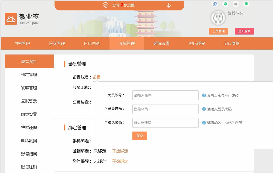 五、确认无误后点击提交,即可自动返回会员管理界面,会员账号自动更新,即代表QQ登录用户注册绑定个性账号成功。