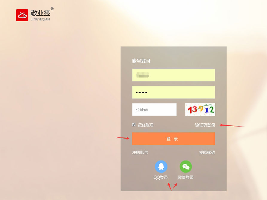通过账号密码、手机验证码以及微信QQ互联登录敬业签账号的具体方法,可查看相关登录方式的具体登录教程,来完成敬业签账号的正常登录和使用。